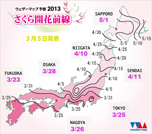 Are you planning on catching the cherry blossoms in Japan this year? Then the forecast that the weather stations recently released would come in handy!
